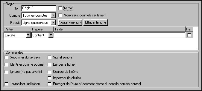 L'utilisation de cette règle sera journalisée dans le fichier Rules.log qui se trouve dans le répertoire PopTray. La journalisation ne se fera que si vous avez coché la case Journaliser l'utilisation des règles dans la fenêtre Divers |